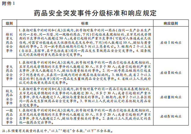 附件:1.藥品安全突發事件分級標準和響應規定