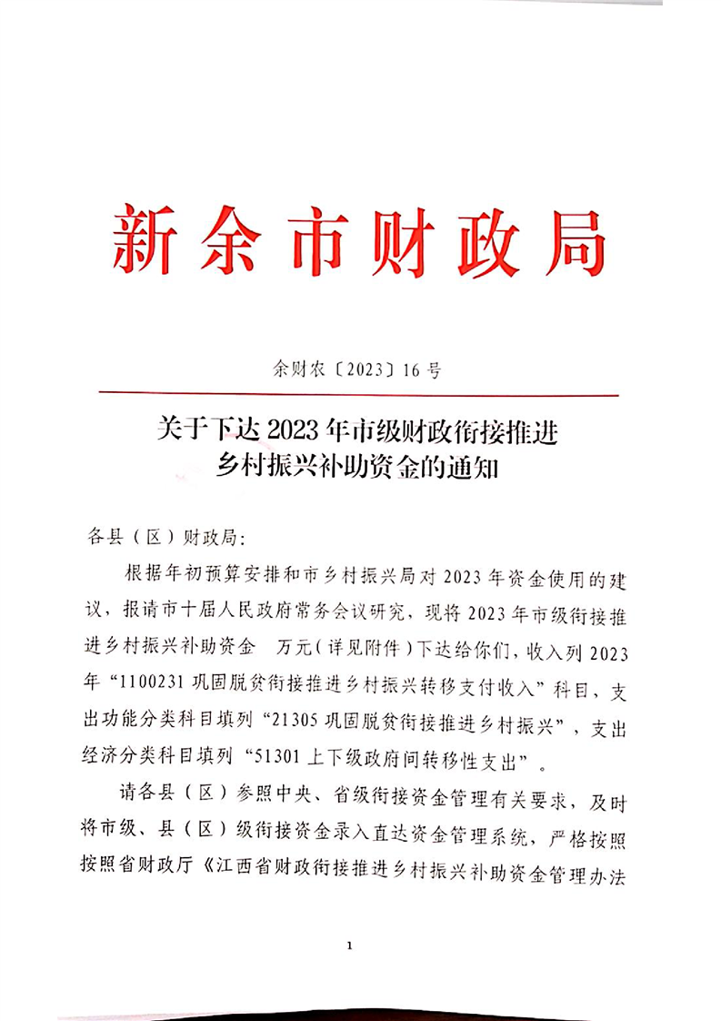 【鄉村振興資金分配】關于下達2023年市級銜接推進鄉村振興補助資金的通知