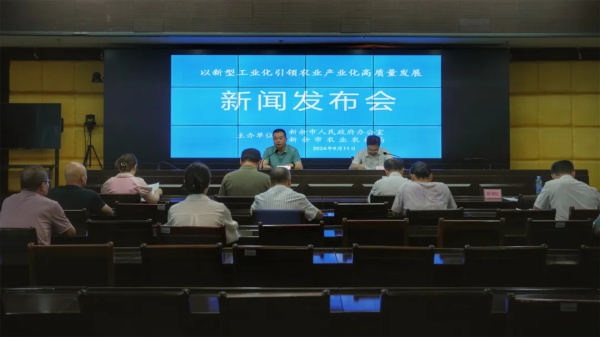 9月11日,市政府辦、農業農村局聯合召開以新型工業化引領農業產業化高質量發展新聞發布會。市農業農村局黨組成員、副局長秦耀輝出席會議并發布,市農業科學研究中心黨組成員、副主任潘強主持會議,新聞媒體及相關人員等參加發布會。