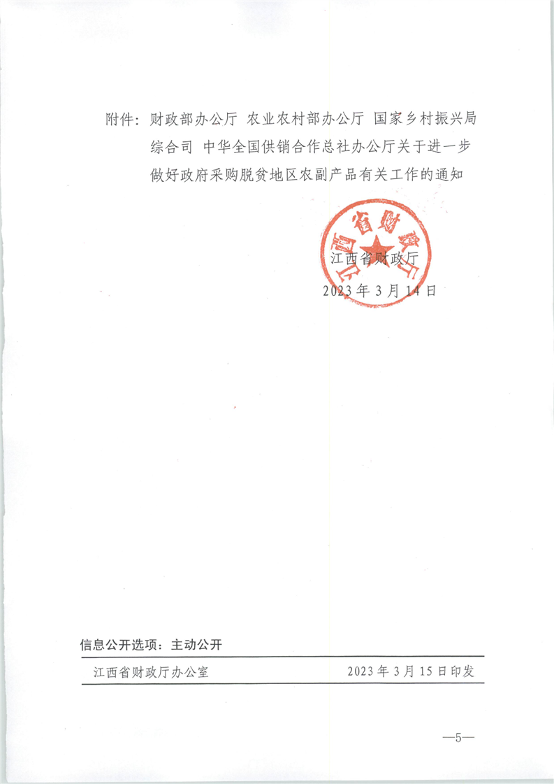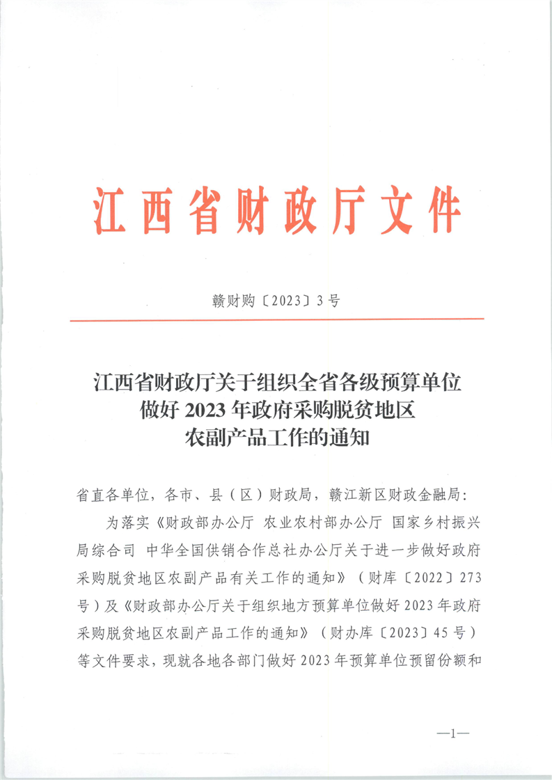 江西省財政廳關(guān)于組織全省各級預(yù)算單位做好2023年政府采購脫貧地區(qū)農(nóng)副產(chǎn)品工作的通知