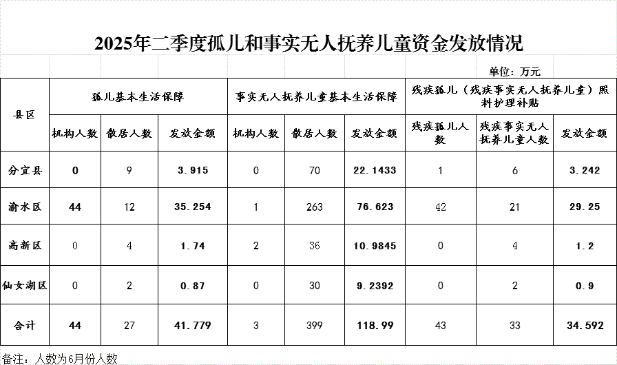 2025年二季度孤兒和事實無人撫養兒童資金發放情況