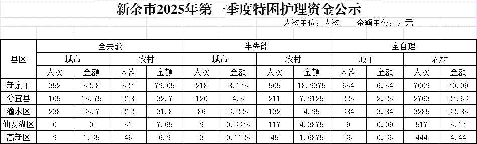 【特困護理】新余市2025年第一季度特困護理資金公示