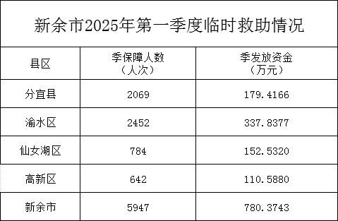 新余市2025年第一季度臨時救助情況