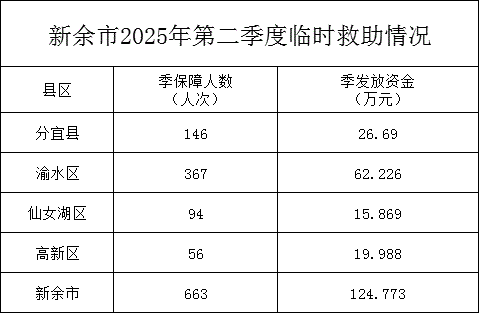 新余市2025年第二季度臨時救助情況