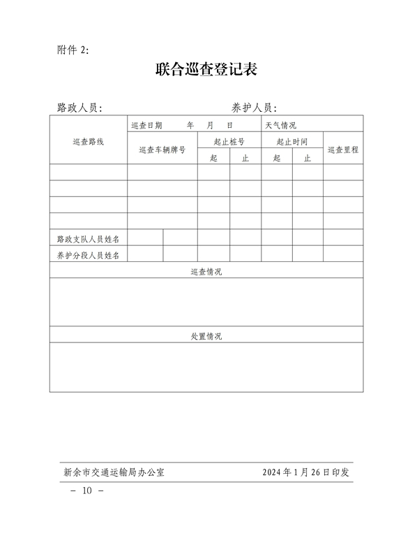 關于印發《新余市公路路政與養護+聯合巡查協作辦法(試行)》的通知
