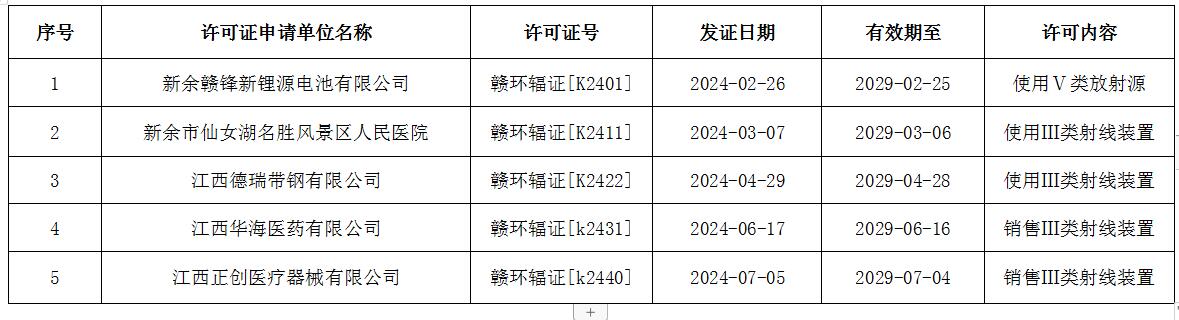 2024年第一、二季度輻射安全許可證核發情況公告