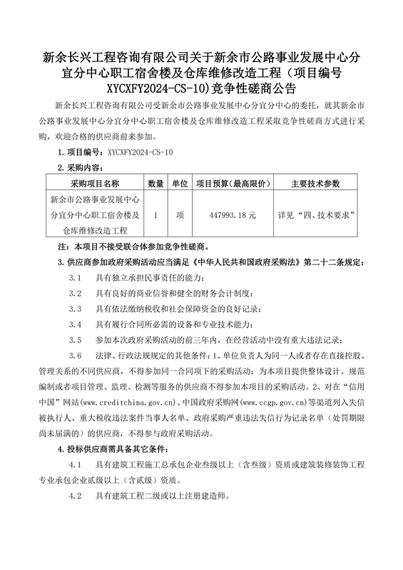新余市公路事業發展中心分宜分中心職工宿舍樓及倉庫維修改造工程-招標公告