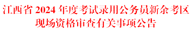 根據《江西省2024年度考試錄用公務員公告》《江西省2024年度考試錄用公務員面試及調劑有關事項公告》《江西省2024年度考試錄用公務員調劑入闈面試人員名單及資格審查公告》等有關規定,現將江西省2024年度考試錄用公務員新余考區現場資格審查有關事項公告如下: