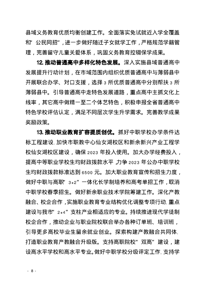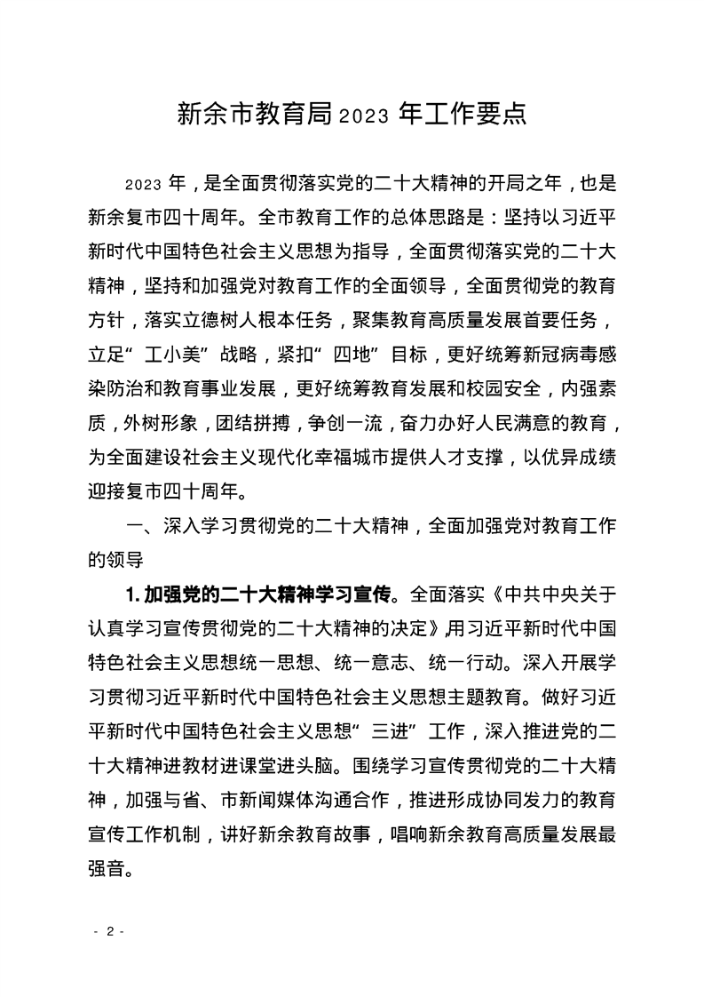 新余市教育局2023年工作要點