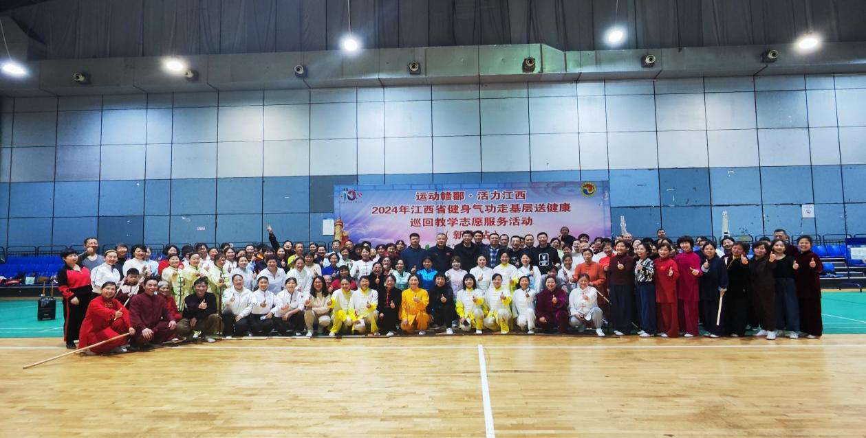 3月23日至24日,“運動贛鄱·活力江西2024年江西省健身氣功走基層送健康巡回教學志愿服務活動(新余站)”在新余市體育中心綜合館舉行。此次活動由江西省武術運動管理中心主辦,新余市體育局、新余市體育總會承辦,新余市健身氣功協會協辦。參加活動的有各站(點)健身氣功愛好者共150余人。