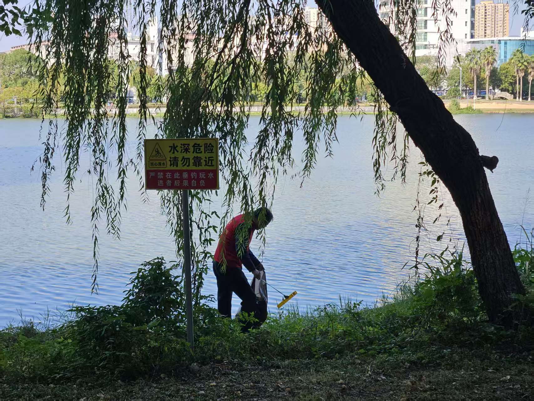 隨后,參與者在水利干部職工和資深“河小青”志愿者的帶領下,沿著孔目江一中段開展實地巡護。這一段河道治理成效顯著、環境宜人,是市民親近自然、了解水情的理想地點。志愿者們手持垃圾夾、垃圾袋,細心清理岸邊的零星垃圾,不時交流著巡河的感受。