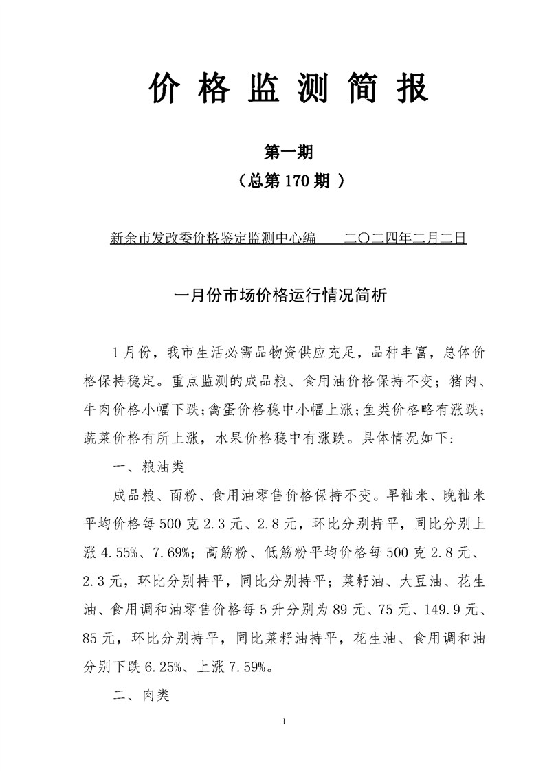 價格監測簡報2024年(第1期)