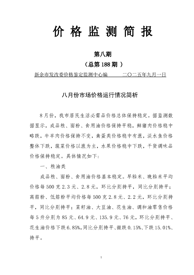 價格監測簡報2025年(第8期)