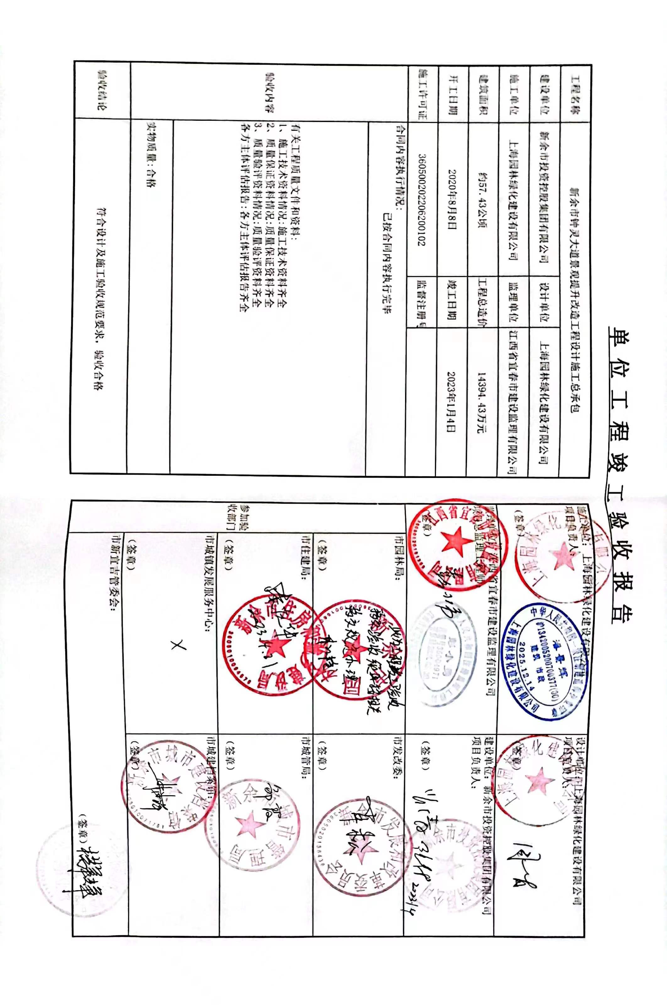 新余市鐘靈大道景觀提升改造項目竣工驗收報告