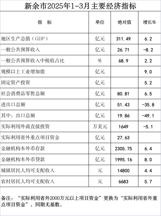 新余市2025年1-3月主要經(jīng)濟指標(biāo)