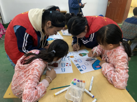 新余市職業教育中心“黨建+青團有為”助教團的“小老師”們走進水北二小課后延時課堂,教孩子們繪制防溺水美工畫。在“小老師”們的帶領下,孩子們對救生設備、溺水自救等知識有了新的認識,牢記“預防溺水,珍愛生命”的重要性。