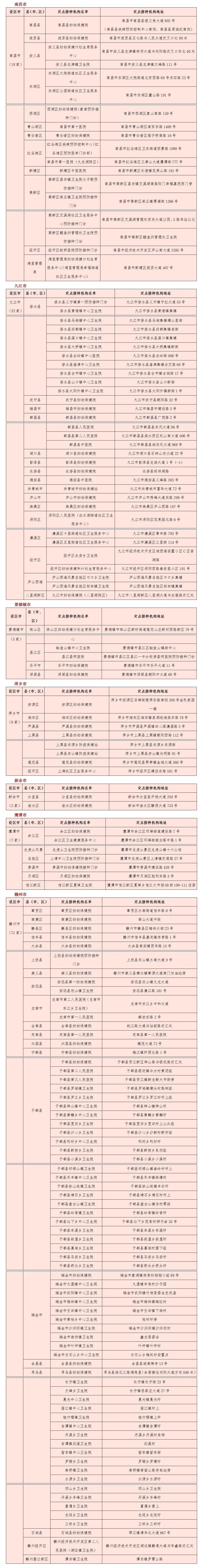 定點接種機構(gòu)名單: