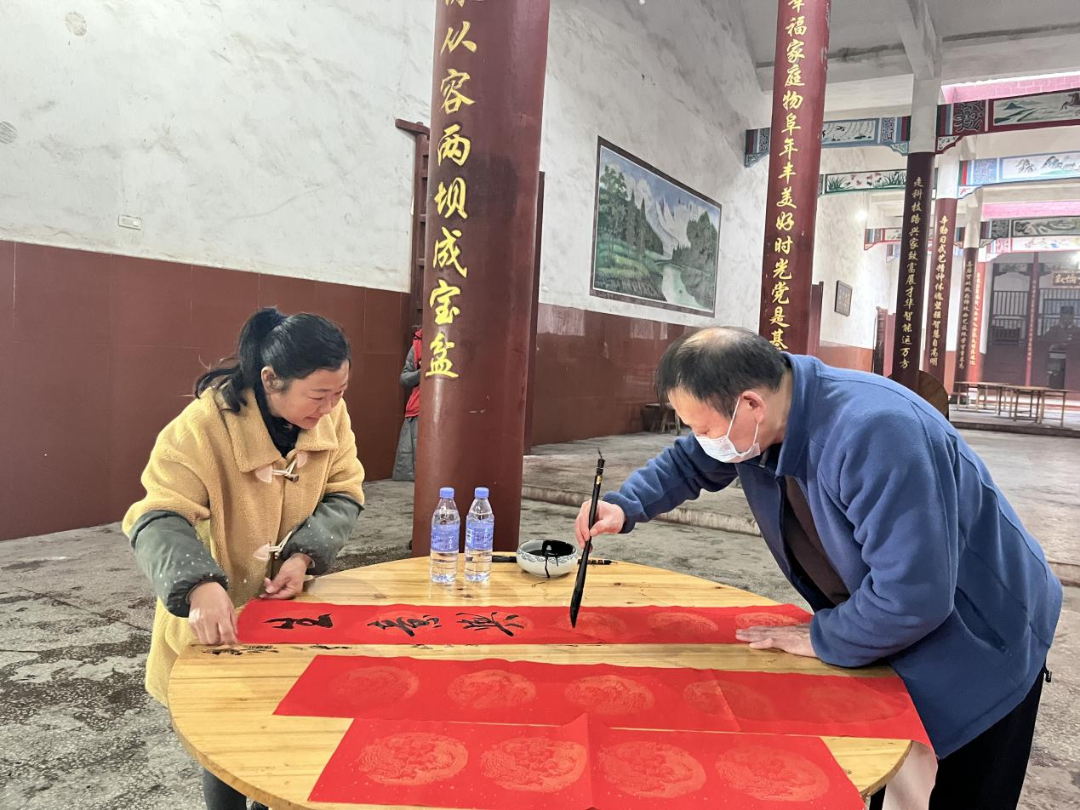 為營造節(jié)日喜慶氛圍,團市委還組織書法愛好者,在姜源村新時代文明實踐站開展“寫對聯(lián)送祝福”志愿活動。活動現(xiàn)場,紅紙鋪展,濃墨飄香,笑語盈盈。