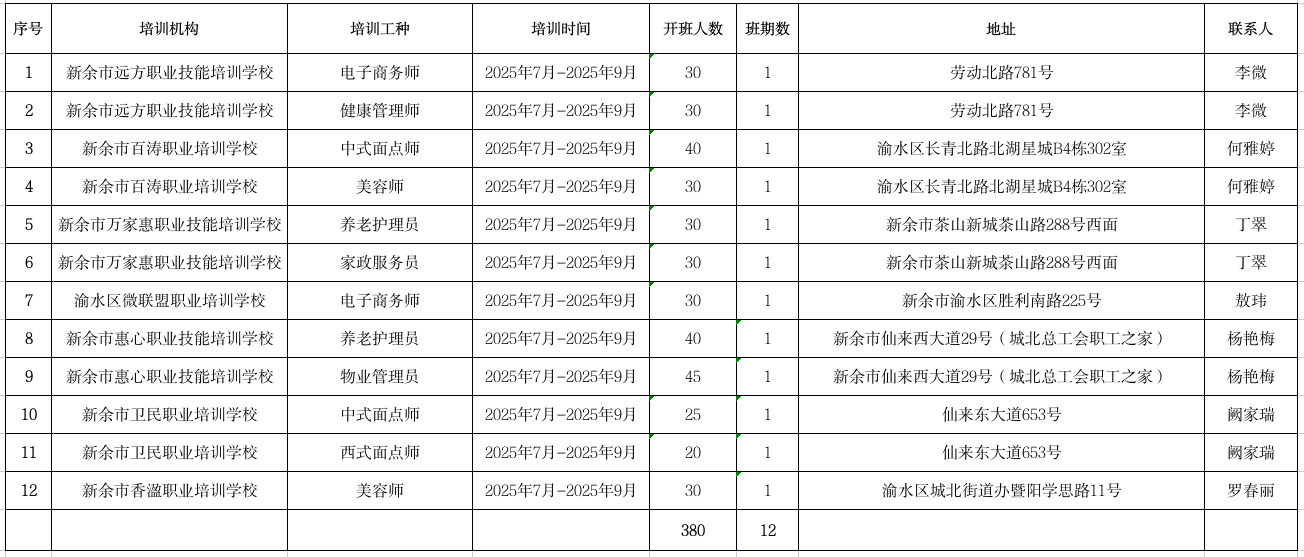 【培訓計劃】2025年7-9月市本級就業技能培訓開班計劃表