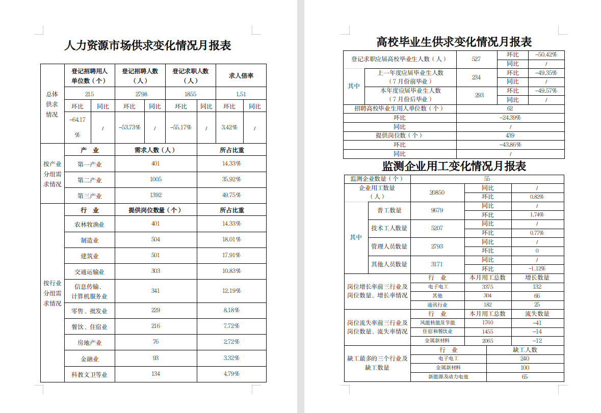 特點:企業用工需求更為凸顯。我市是一個以鋼鐵、新能源、光伏、鋰電產業為主的工業城市,因此,我市第二產業的用人需求相對較旺,企業對一線操作工需求最為旺盛,特別是今年部分勞動密集型企業擴大產能,企業用工需求進一步增加,尤其對一線勞動工人需求更為凸出。