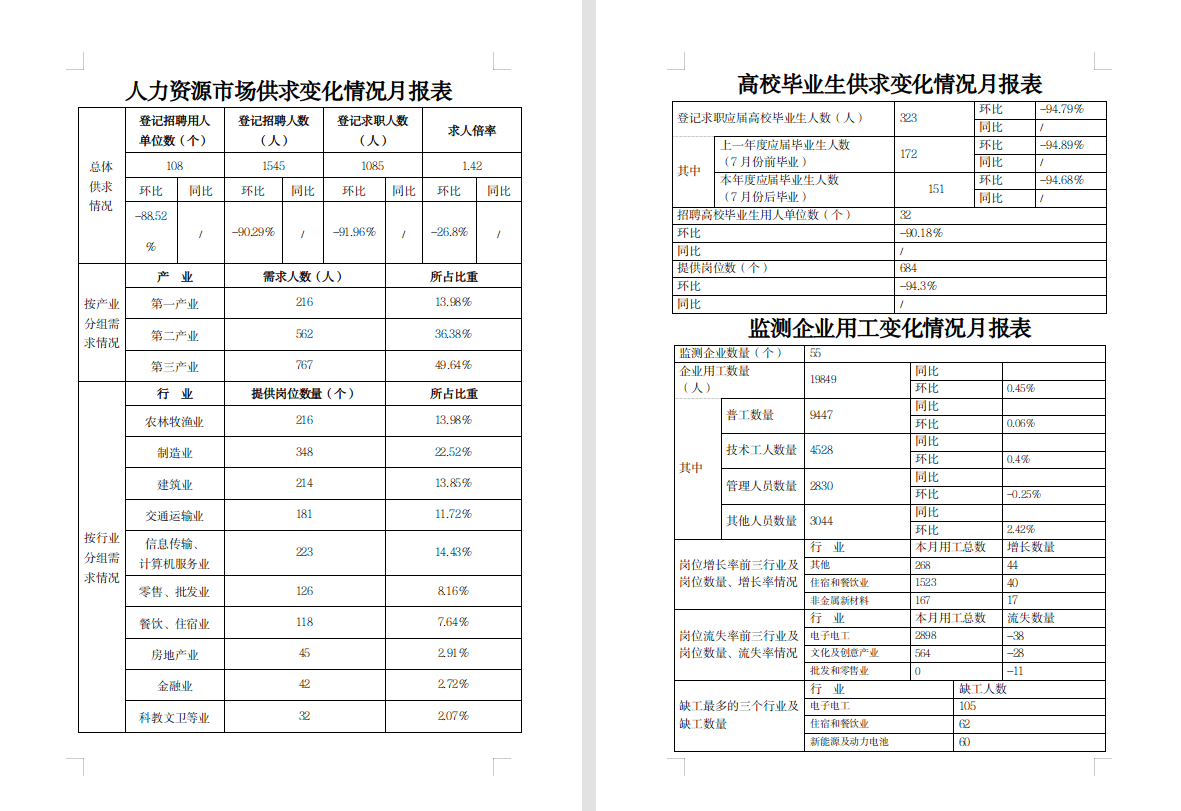 特點:一是企業(yè)用工需求更為凸顯。我市是一個以鋼鐵、新能源、光伏、鋰電產(chǎn)業(yè)為主的工業(yè)城市,因此,我市第二產(chǎn)業(yè)的用人需求相對較旺,企業(yè)對一線操作工需求最為旺盛,特別是今年部分勞動密集型企業(yè)擴大產(chǎn)能,企業(yè)用工需求進一步增加,尤其對一線勞動工人需求更為凸出。二是第三產(chǎn)業(yè)從業(yè)人數(shù)持續(xù)增長。由于大部分大中專院校畢業(yè)生一般不愿從事艱苦行業(yè)和車間一線工作,同時伴隨著新就業(yè)形態(tài)發(fā)展壯大,交通物流、信息技術(shù)網(wǎng)絡(luò)平臺等現(xiàn)代服務(wù)業(yè)用人需求快速增長,為大中專院校畢業(yè)學(xué)生和其他新成長勞動者提供更多適合的就業(yè)崗位,第三產(chǎn)業(yè)從業(yè)人數(shù)呈現(xiàn)持續(xù)增長的趨勢。