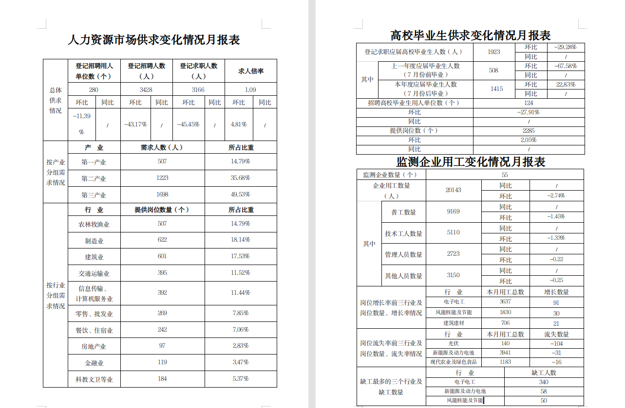 特點(diǎn):企業(yè)用工需求更為凸顯。我市是一個(gè)以鋼鐵、新能源、光伏、鋰電產(chǎn)業(yè)為主的工業(yè)城市,因此,我市第二產(chǎn)業(yè)的用人需求相對(duì)較旺,企業(yè)對(duì)一線操作工需求最為旺盛,特別是今年部分勞動(dòng)密集型企業(yè)擴(kuò)大產(chǎn)能,企業(yè)用工需求進(jìn)一步增加,尤其對(duì)一線勞動(dòng)工人需求更為凸出。