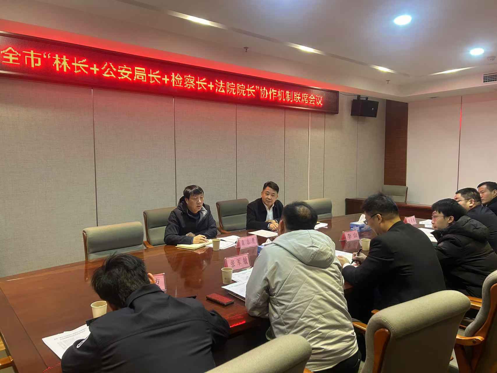12月9日,新余市召開“林長+公安局長+檢察長+法院院長”協作機制聯席會議,以此進一步發揮“四長聯動”工作機制作用,及時總結經驗,更好推動下一步工作。市林長辦、市公安局、市檢察院與市法院分管領導與聯絡員參加會議。