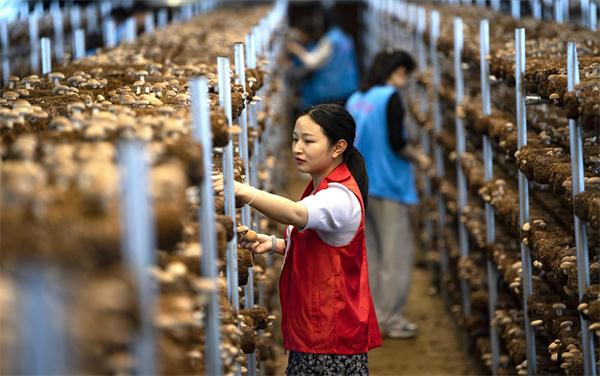 5月28日,仙女湖區河下鎮平川村溫室水簾大棚內,黨員志愿者幫助菌農采收香菇。近年來,我市依托蘑菇生產產業化經營龍頭企業,全市范圍內由公司統一菌包,統一管理、統一技術、統一銷售,將小小蘑菇做成了大產業。