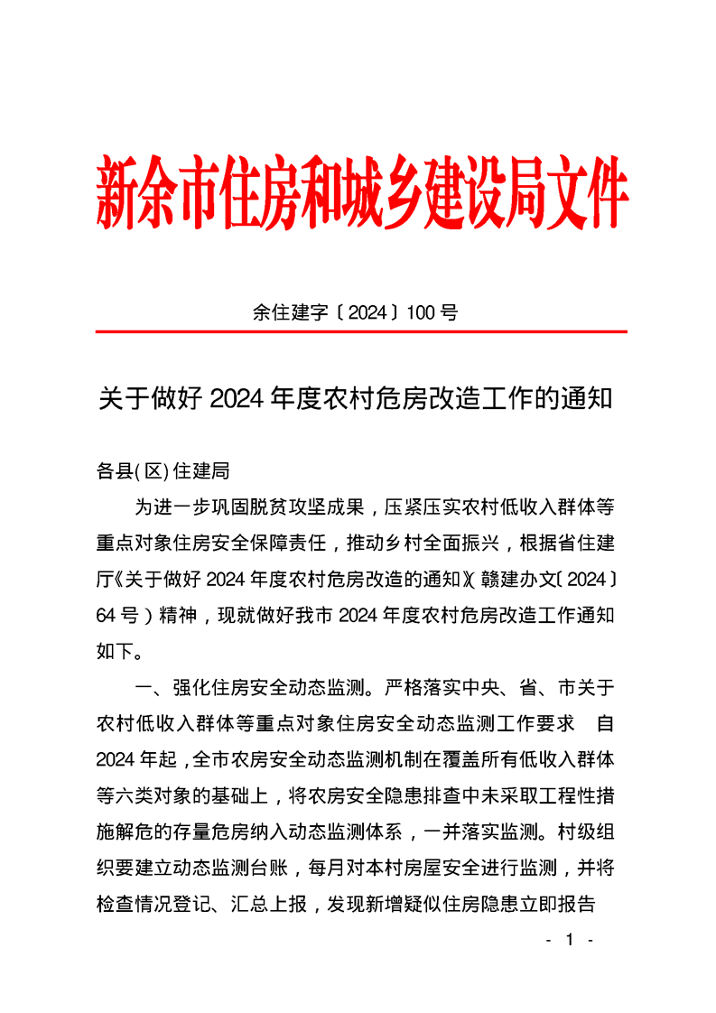 關于做好 2024 年度農村危房改造工作的通知(余住建字[2024]100號)