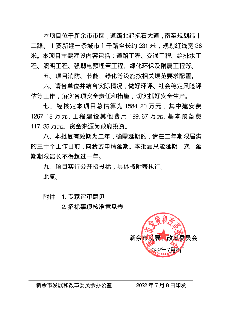 新余市發(fā)展改革委關于城東汽車站周邊路網(wǎng)完善工程可行性研究報告及招標事項核準的批復