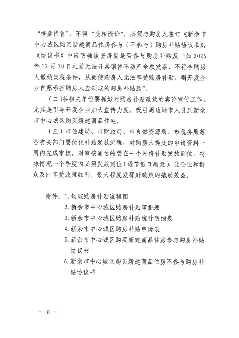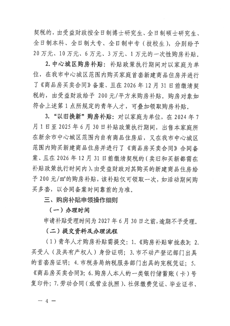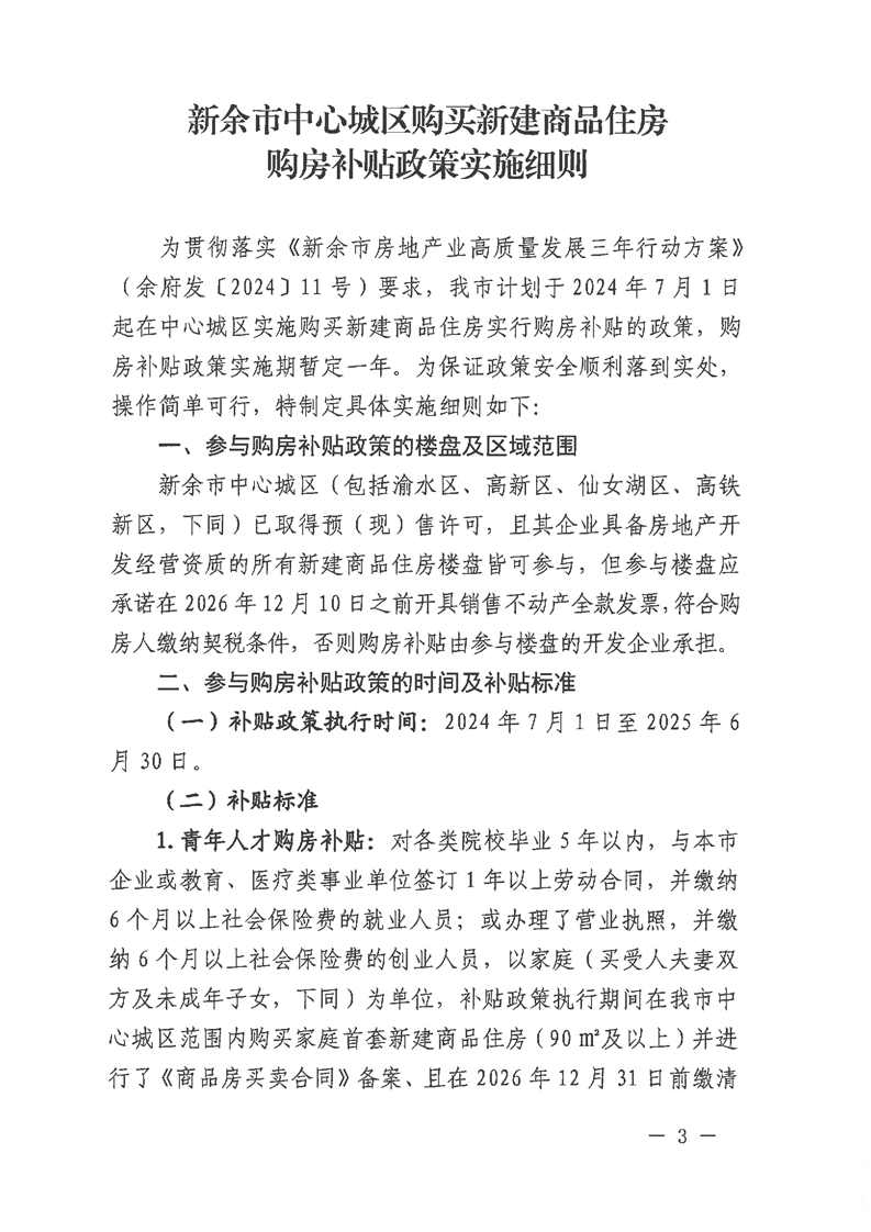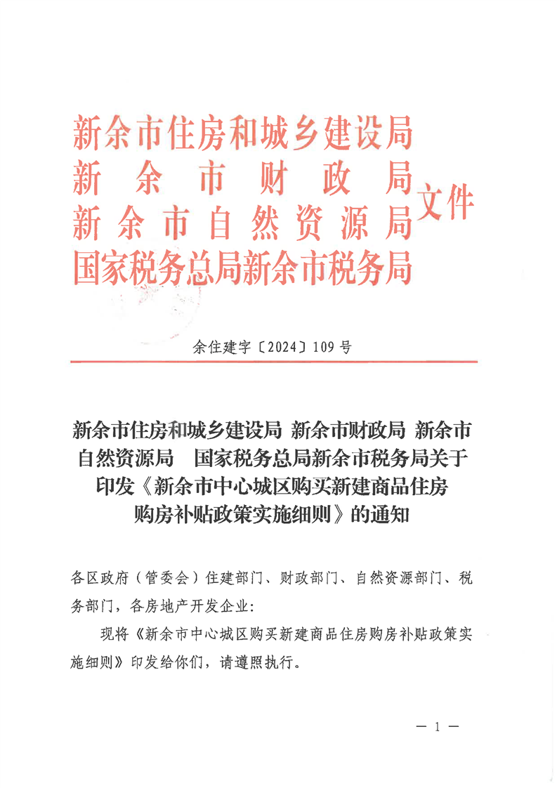 關于印發《新余市中心城區購買新建商品住房購房補貼政策實施細則》的通知