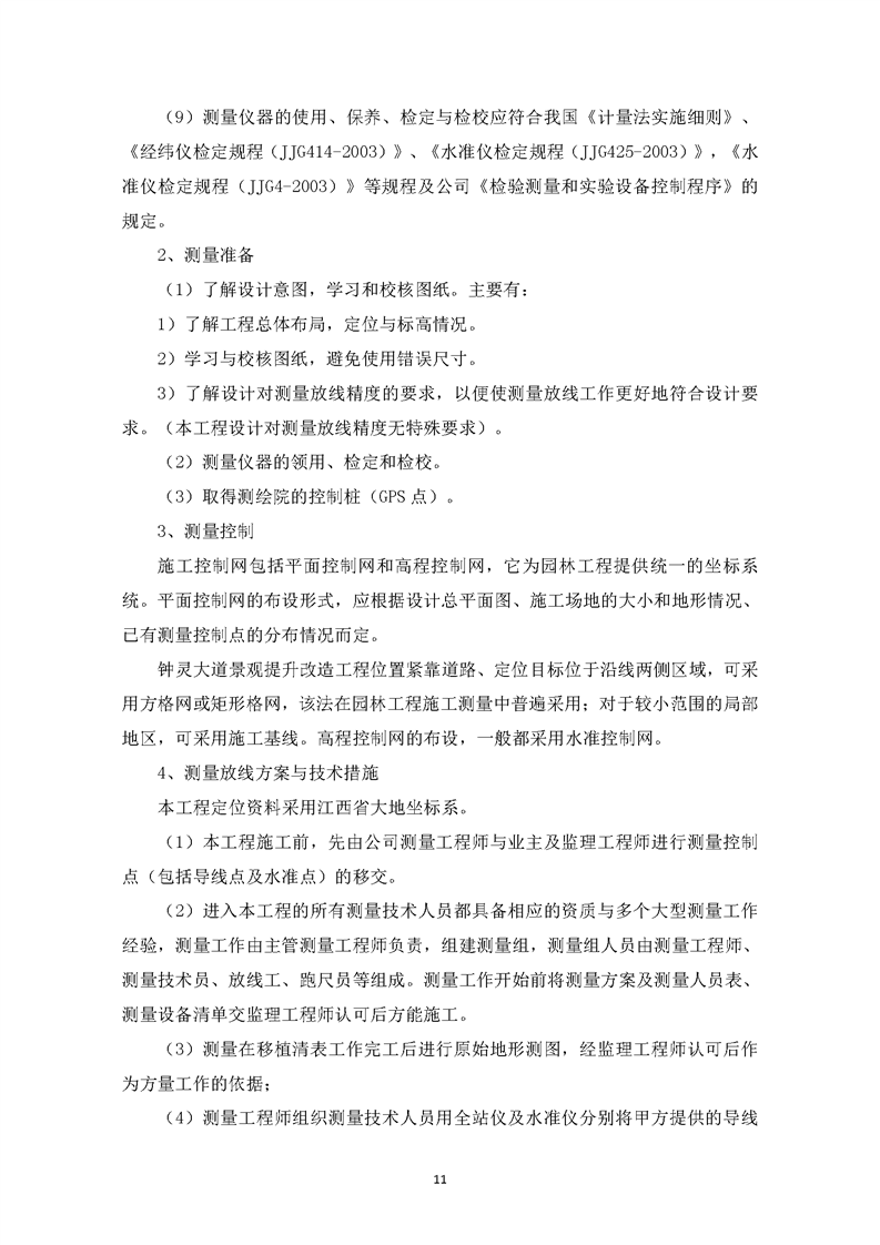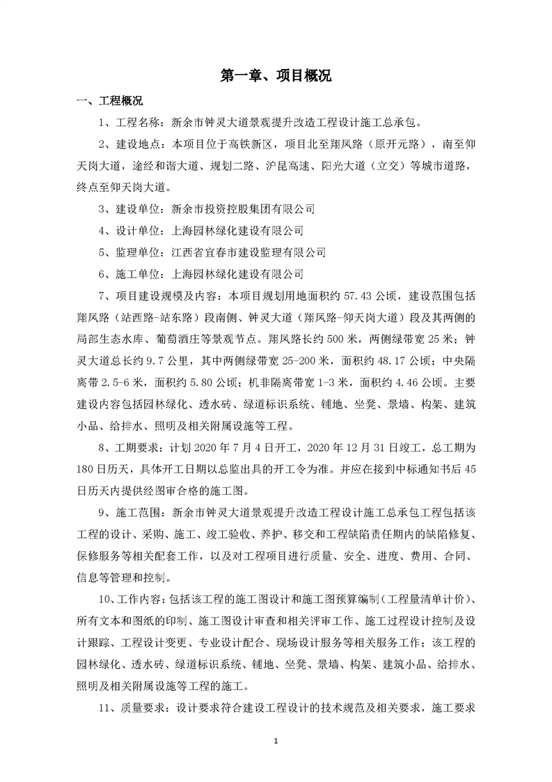 新余市鐘靈大道景觀提升改造項目施工組織設計