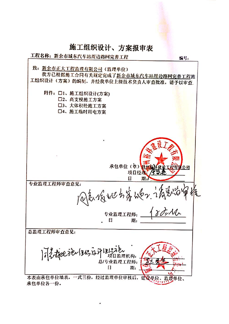 新余市城東汽車站周邊路網完善工程施組審核意見