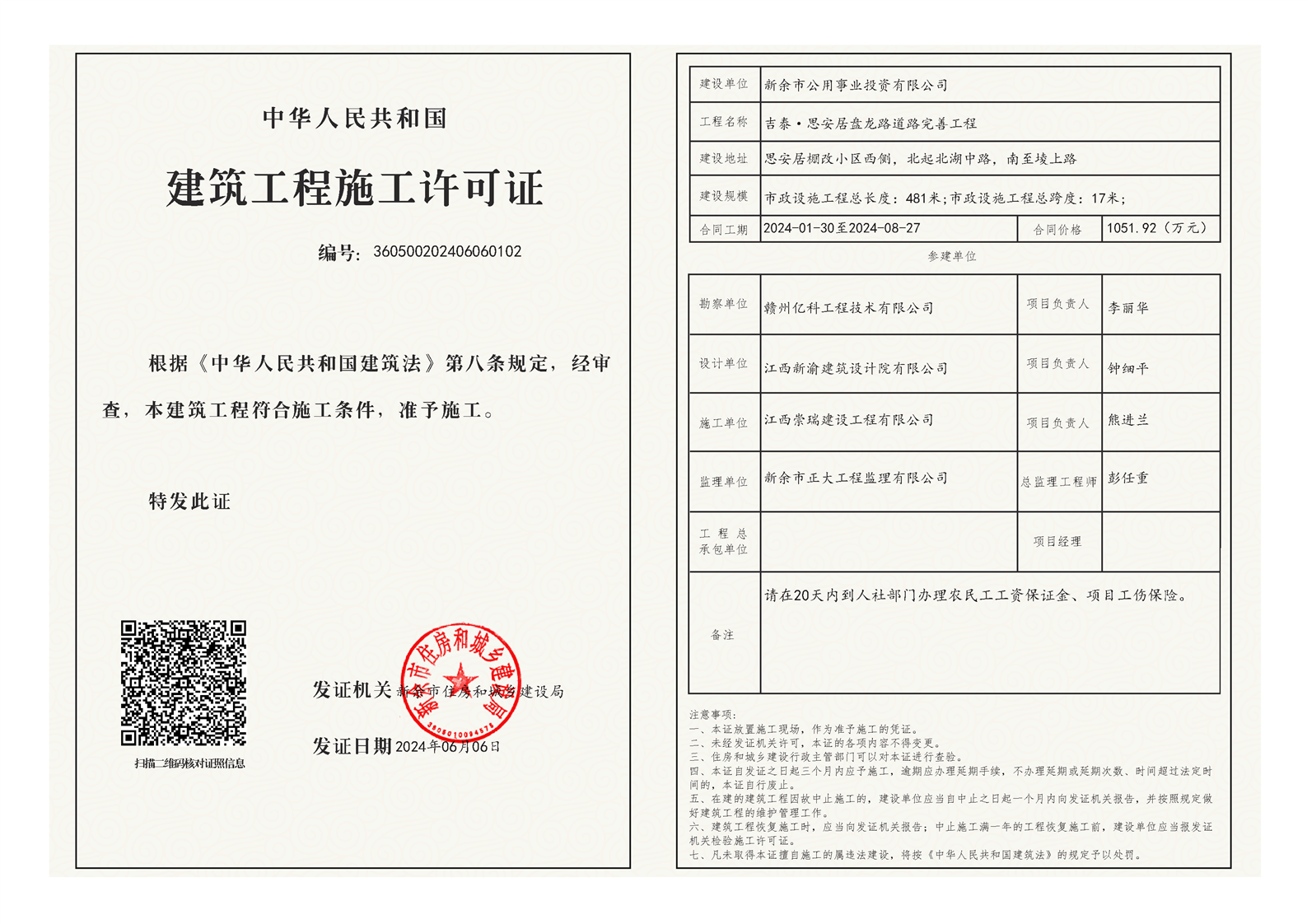 吉泰·思安居盤龍路道路完善工程-建筑工程施工許可證