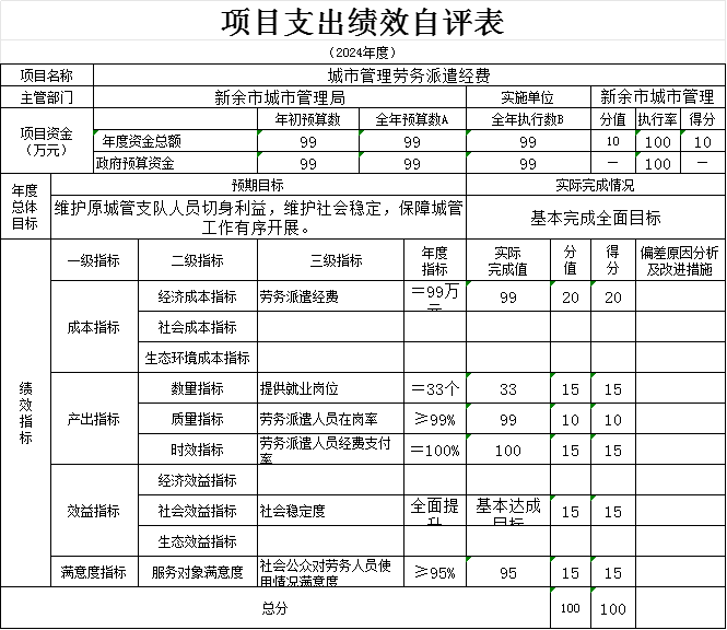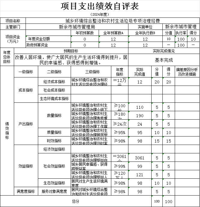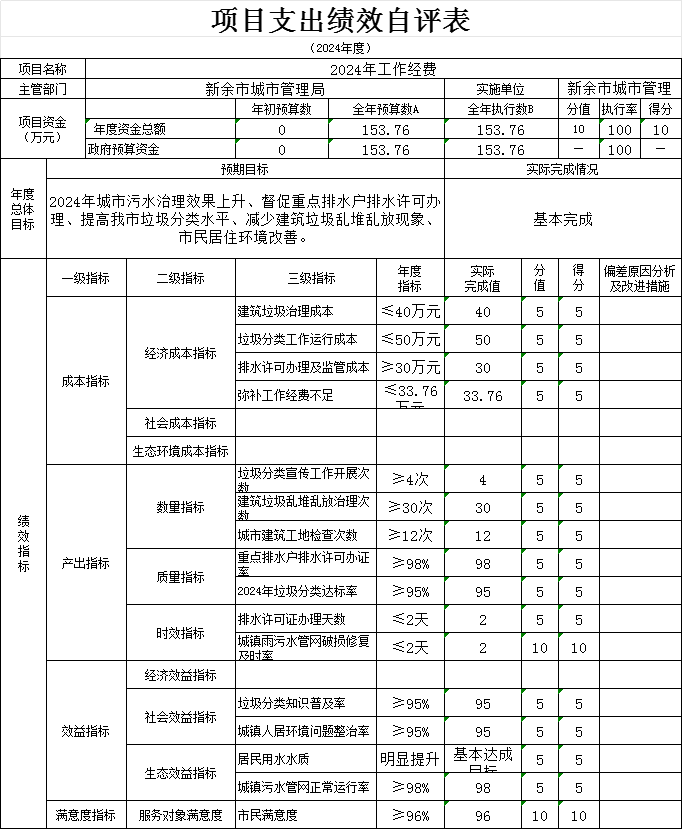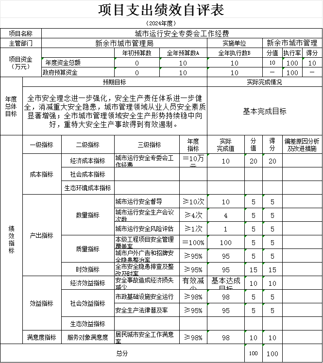 本單位“生活垃圾分類工作經費”“城市運行安全專委會工作經費”等項目支出績效自評結果如下: