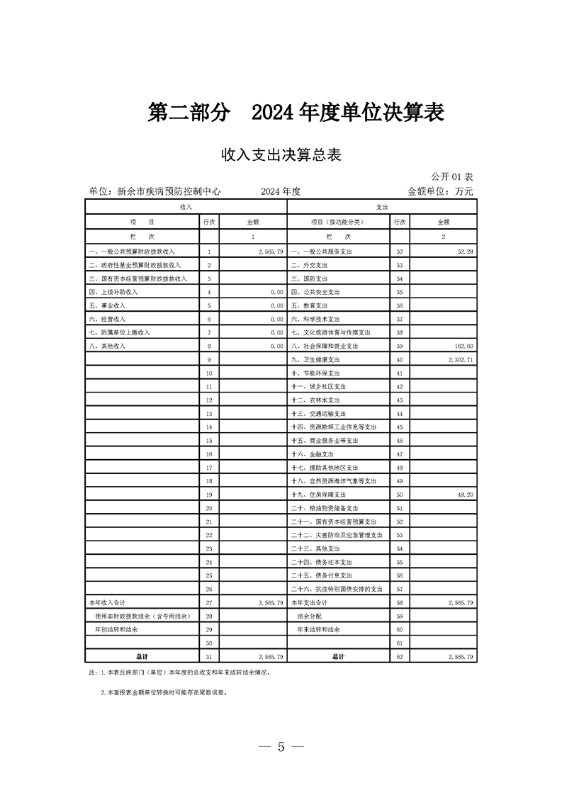 新余市疾病預(yù)防控制中心2024年度單位決算
