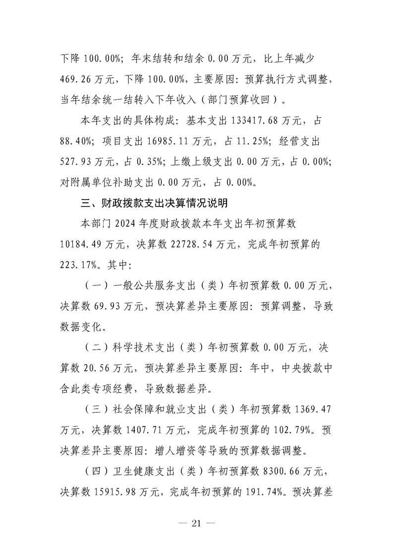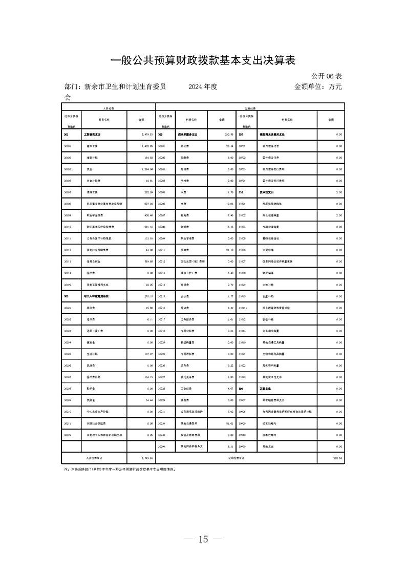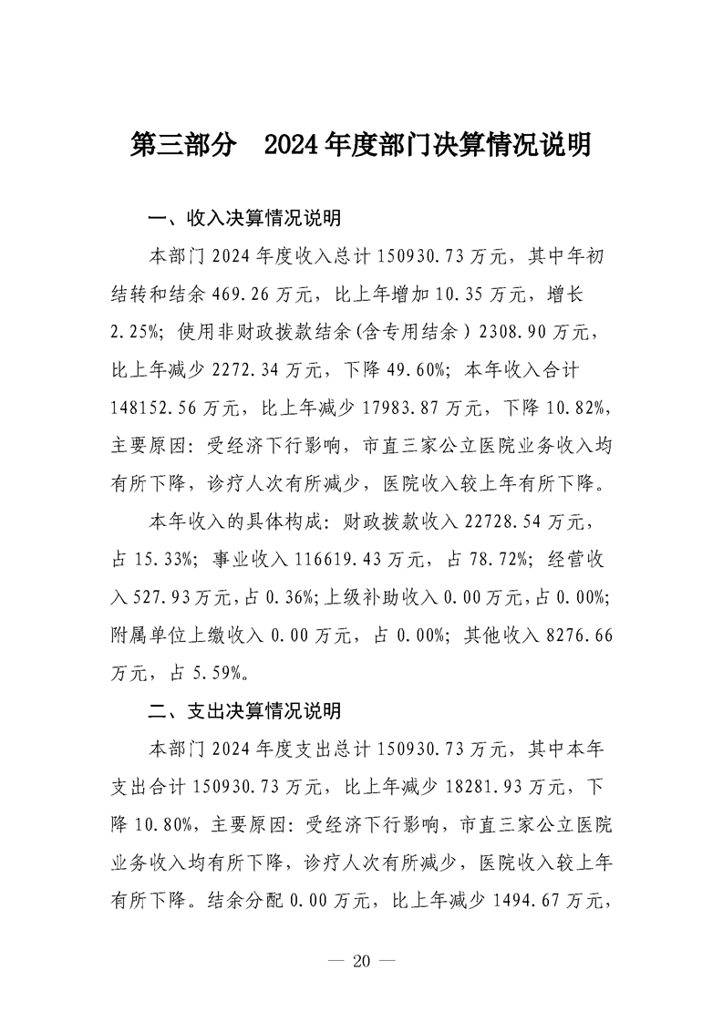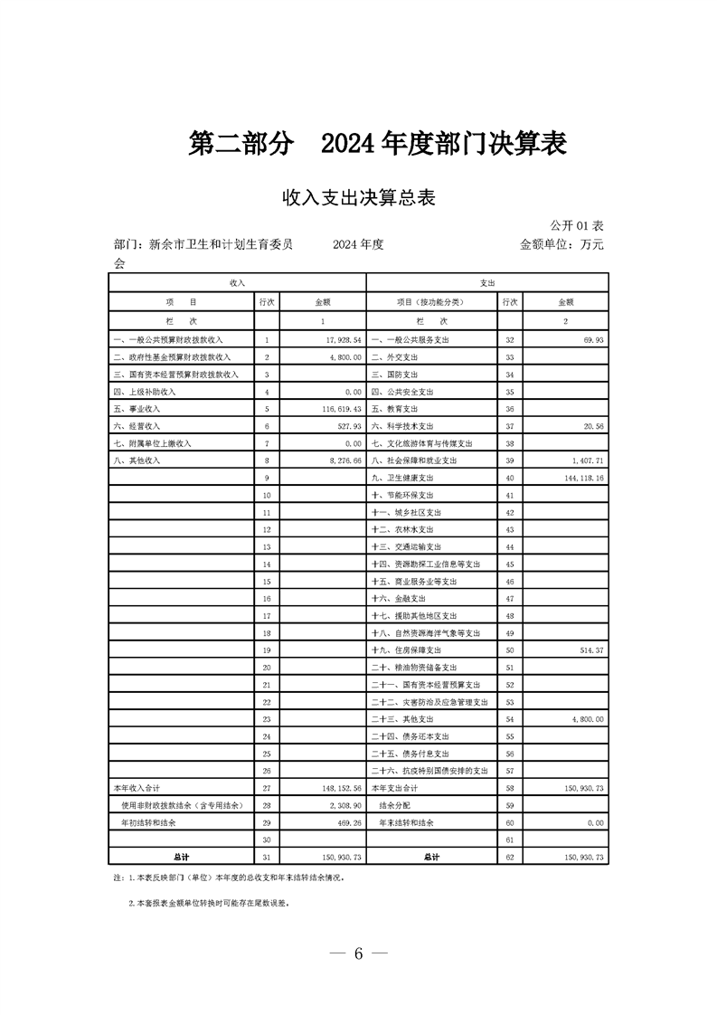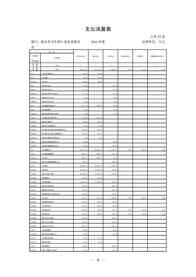 新余市衛(wèi)生健康委員會(huì)2024年部門決算(匯總)