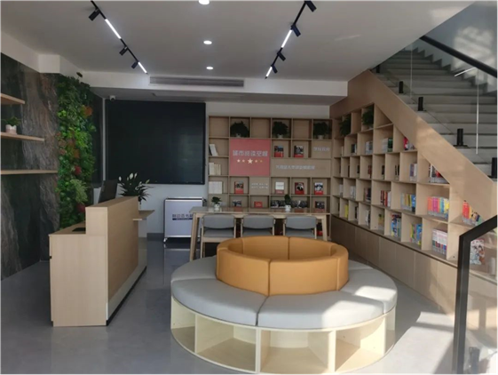 位于北湖東路暨陽玫瑰城一期中山路社區辦公樓,總面積140平米,配套1萬冊左右的書籍,和電子閱讀機、借閱機、桌椅等設備,極大的增強了社區文化服務能力。