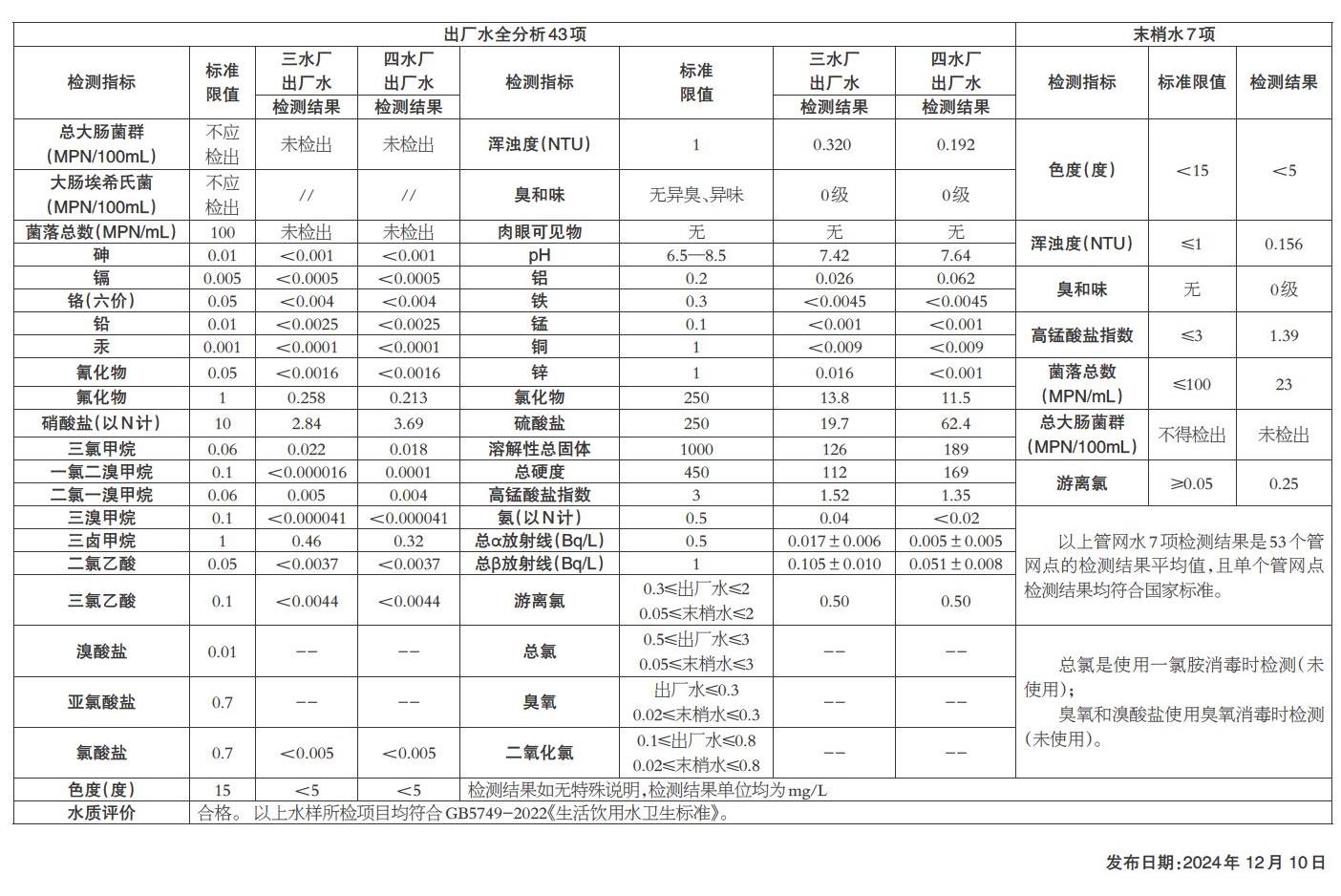 新余市城區(qū)供水水質(zhì)情況表2024年11月