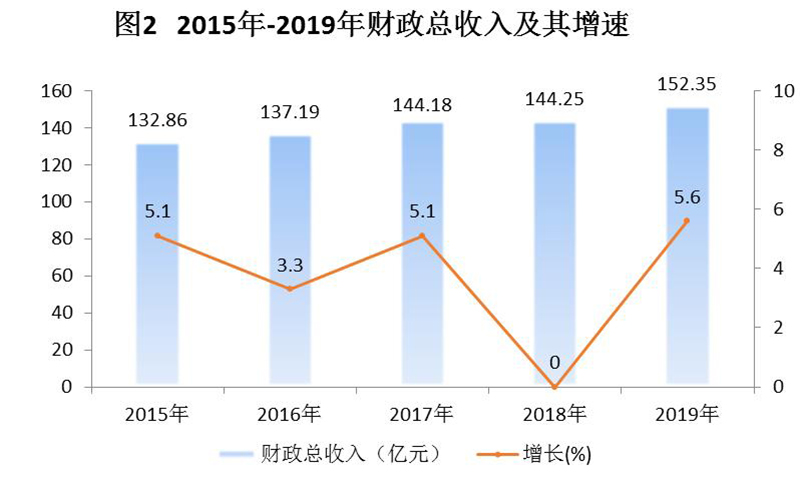 全年財政總收入152.35億元,比上年增長5.6%。其中,一般公共預算收入77.96億元,增長2.1%。稅收總收入139.29億元,增長7.4%,占財政總收入的比重為91.4%,比上年提高1.5個百分點。在主體稅種中,增值稅76.05億元,增長6.7%;企業所得稅32.91億元,增長34.7%。全年一般公共預算支出156.09億元,增長11.2%。其中,一般公共服務支出13.63億元,增長11.6%;城鄉社區支出17.86億元,增長123.0%;住房保障支出7.34億元,增長41.7%。