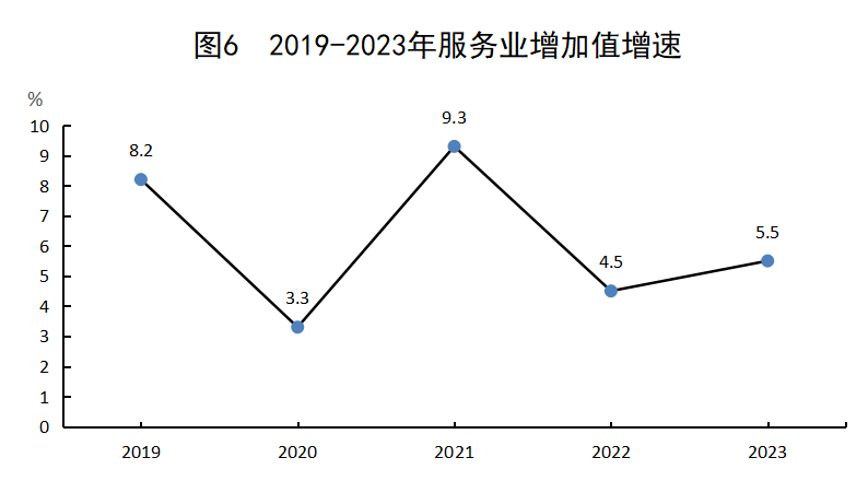 4.規模以上服務業統計范圍包括:年營業收入2000萬元以上的交通運輸、倉儲和郵政業,信息傳輸、軟件和信息技術服務業,水利、環境和公共設施管理業,衛生行業法人單位;年營業收入1000萬元租賃和商務服務業,科學研究和技術服務業,教育,以及物業管理、房地產中介服務、房地產租賃經營和其他房地產業法人單位;以及年營業收入500萬元及以上的居民服務、修理和其他服務業,文化、體育和娛樂業,社會工作行業法人單位。