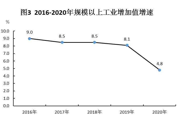 表3 2020年規(guī)模以上工業(yè)主要產品產量及其增長速度