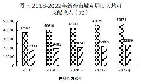 全年全市城鎮(zhèn)居民人均可支配收入47574元,比上年增長4.2%;農(nóng)村居民人均可支配收入23859元,增長5.6%。城鎮(zhèn)居民人均消費支出28735元,增長4.4%;農(nóng)村居民人均消費支出19050元,增長7.4%。