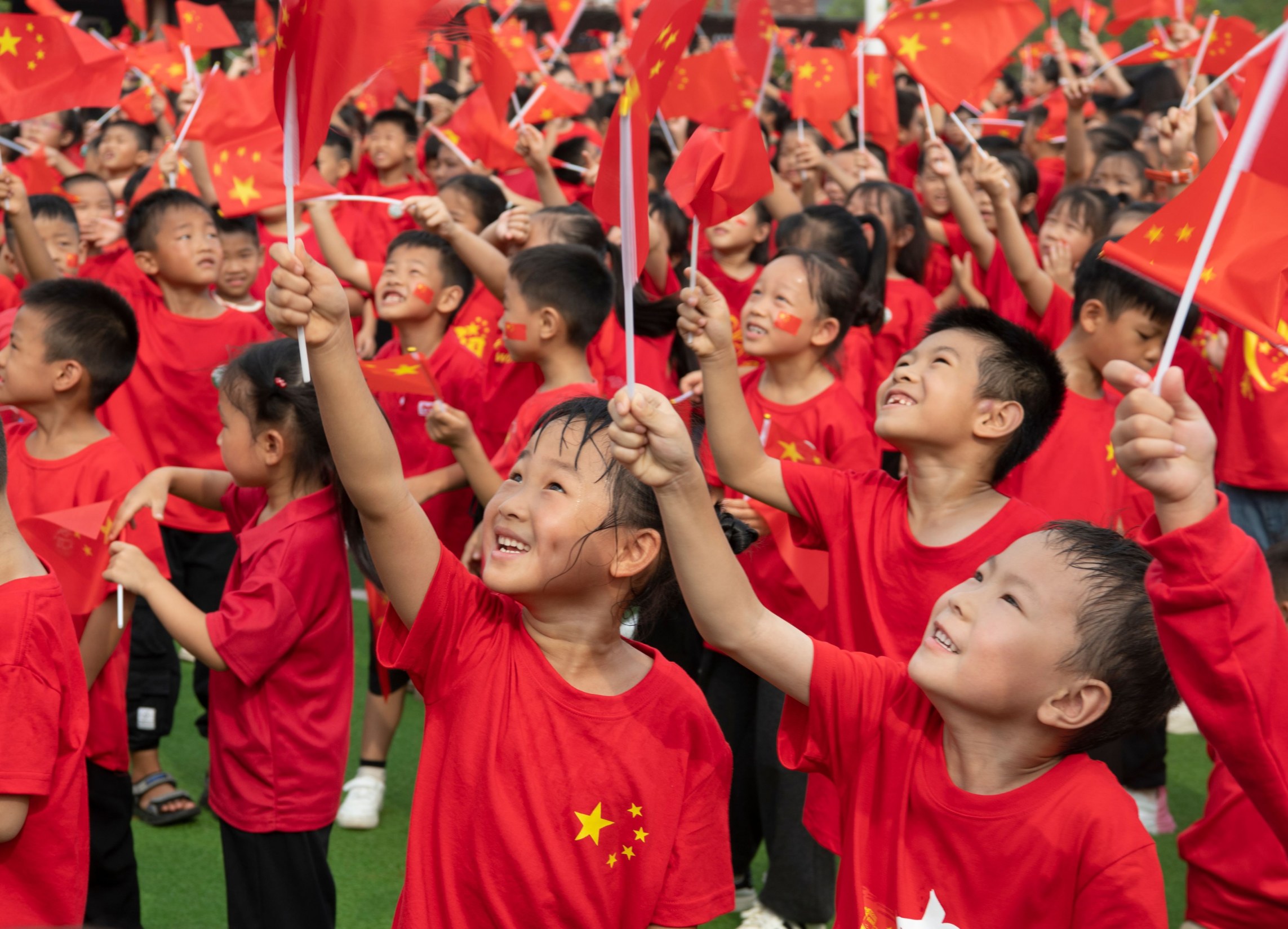 9月29日,高新三小“童心向黨,強國有我”迎國慶主題活動上,小學生揮動國旗祝福偉大的祖國繁榮昌盛。