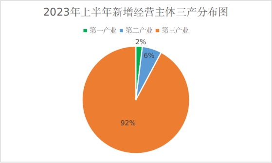 (五)產業結構趨于固化,三產不斷做強。今年上半年,全市三大產業新登記經營主體分別為353戶、1069戶、16817戶,占比分別為1.93%、5.84%、91.81%。截至6月底,全市實有經營主體在三大產業的分布分別為3922戶、12420戶、103741戶,占比分別為3.21%、10.15%、84.82%。從產業發展速度來看,第三產業仍占據主導地位,是我市經營主體的投資重點和熱點。第三產業的發展壯大,為全市經濟穩健發展、促進就業提供了支撐、奠定了基礎。
