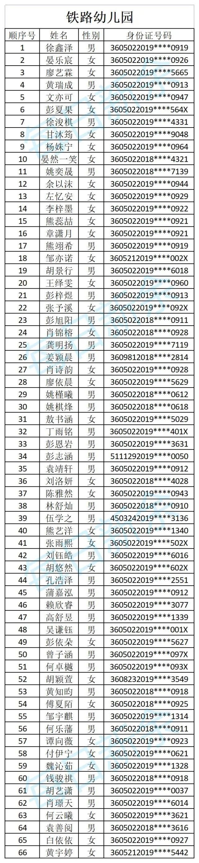 新余市鐵路幼兒園登記報名人數共141人,其中享受入園優待政策人員(軍人、消防指戰員、省級以上領軍人才和全日制博士、烈士、外抗疫醫務人員和疫苗接種期間一線醫務工人員其子女)9人,計劃招生人數75人,除去享受入園優待政策人員9人,實際招生人數為66人。