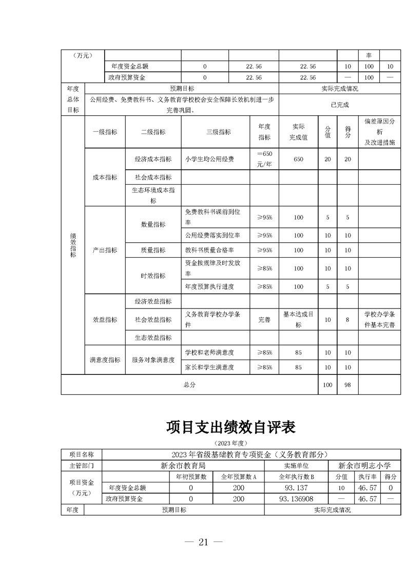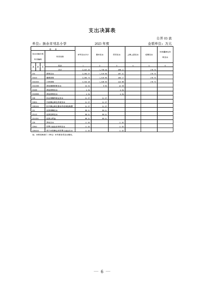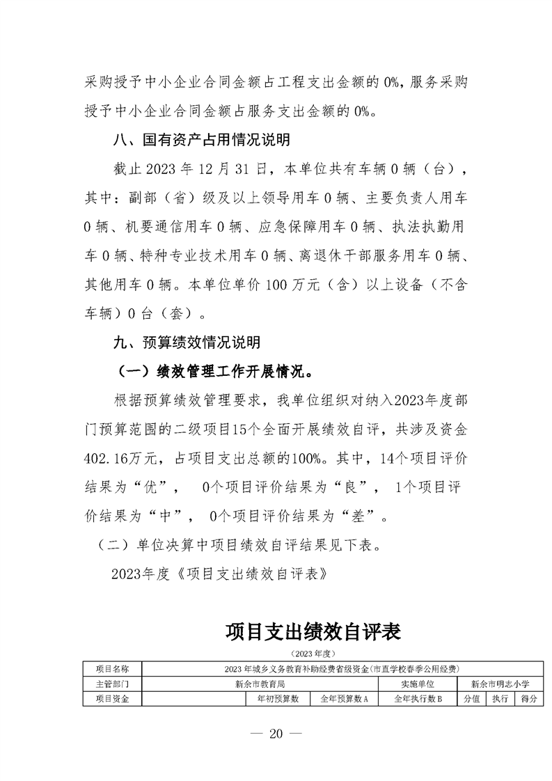 新余市明志小學2023年度單位決算