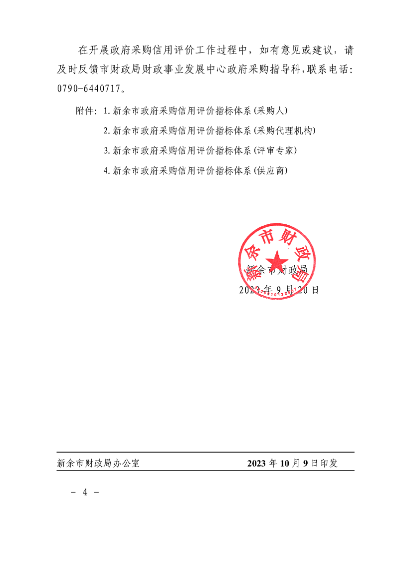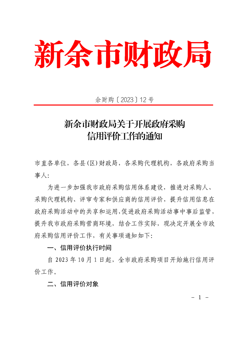 新余市財(cái)政局關(guān)于開(kāi)展政府采購(gòu)信用評(píng)價(jià)工作的通知