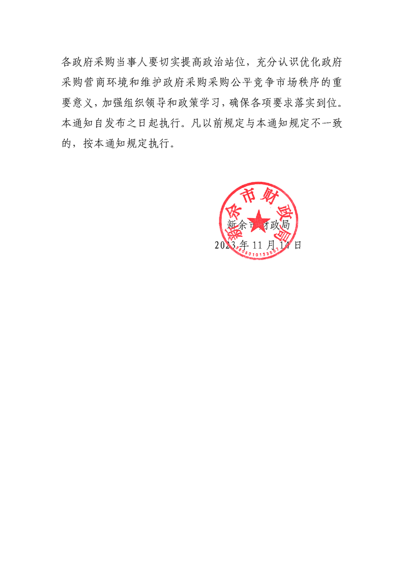 新余市財(cái)政局關(guān)于進(jìn)一步促進(jìn)政府采購公平競爭優(yōu)化營商環(huán)境的通知