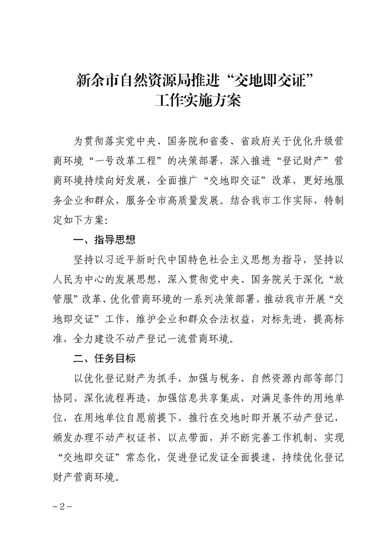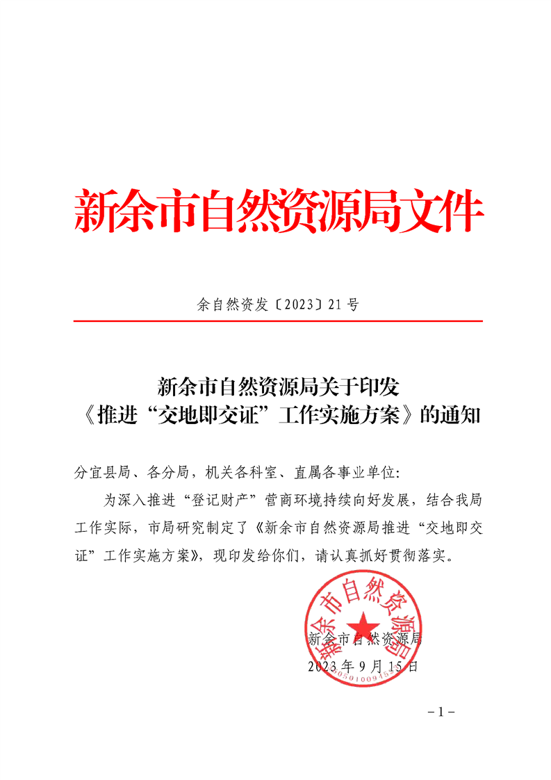 新余市自然資源局關于印發《推進“交地即交證”工作實施方案》的通知